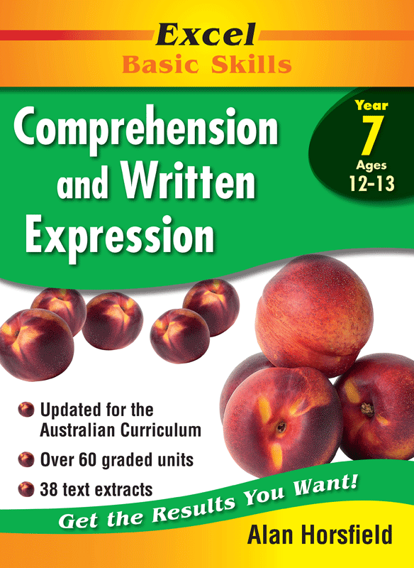 Excel Comprehension and Written Expression Year 7 is essential for any student wishing to improve their comprehension skills. It allows students to practice skills such as finding facts, making references, isolating relevant information, understanding questions and paragraphs, and using tables of contents, indexes, maps and graphs to find information. The extracts are from a wide variety of genres to allow students to gain confidence in reading different materials. On several occasions extracts are reused. This is done to demonstrate that different comprehension skills can be developed from he same piece of writing. Comprehension skills are interdependent. As the student's ability to comprehend increases he/she will also be expected to interpret data. This includes the interpretation of information found in charts, in tables and on maps. In this book your child will find: over 60 graded units of stimulating exercises and extracts awide variety of questions including true or false, multiple choice, short answer and sentence completion extracts from many different literary and factual text types a lift-out answer section